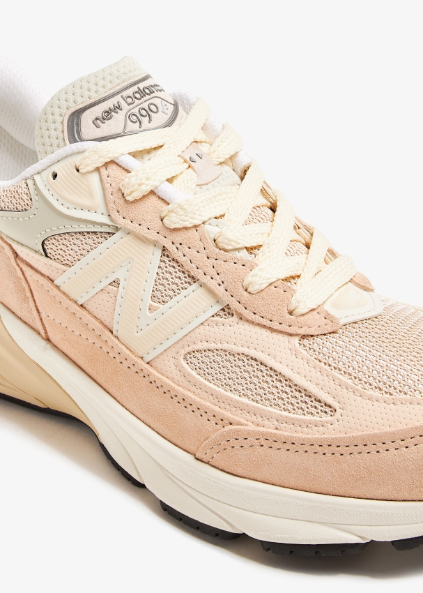 سيصبح سنيكرز ميد إن يو إس إيه 990 في6 من نيو بالانس الخيار المفضل لديك لكل يوم بفضل تصميمه الذي يجمع بين الأداء والأناقة. يتميز برقبة منخفضة وعدد أقل من التفاصيل مع إزالة السرج الموجود في منتصف القدم في الطراز السابق لتصميم طبقات من الكعب إلى الأمام أكثر انسيابية. يأتي بتوسيد مستوحى من الأداء مزود بتقنية "فيول سيل" الجديدة لاستعادة الطاقة.