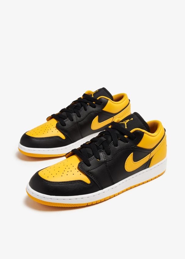 تُقدم نايك سنيكرز إير جوردان 1 لو بتصميم كلاسيكي وأنيق باللون الأصفر المائل إلى البني ومستوحى من النمط الأصلي من عام 1985. صُمم هذا السنيكرز الكاجوال الشهير لدى الدار مع وحدة داخلية بتقنية إير سول لتوسيد خفيف الوزن وجزء علوي من الجلد الفاخر ونعل مطاطي مع بطانة جوراب ناعمة.