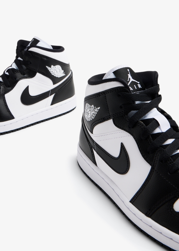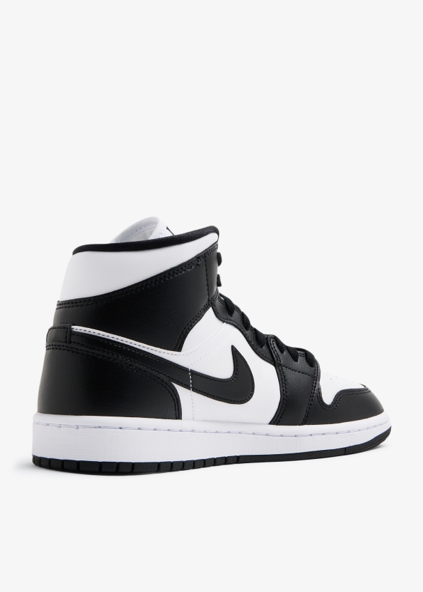 تُعيد نايك تقديم سنيكرز إير جوردان 1 ميد باللونين الأبيض والأسود مع الحفاظ على التصميم الكلاسيكي الشهير المستوحى من كرة السلة ليوفر الراحة الفائقة. يتميز ببنية من الجلد مع توسيد بتقنية "إير-سول" ورقبة مبطنة توفر الدعم ونعل مطاطي وثقوب على المقدمة.