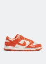 انعمي بإطلالة مستوحاة من أزياء الشارع تخطف الأنظار مع سنيكرز دانك لو من نايك. يتميز بتصميم بلون "كراكد أورينج" مع قاعدة من الجلد الحبيّبي باللون الأبيض، طبقات باللون البرتقالي اللامع، نعل مطاطي بلونين، ثقوب على المقدمة وملصق من القماش على اللسان.